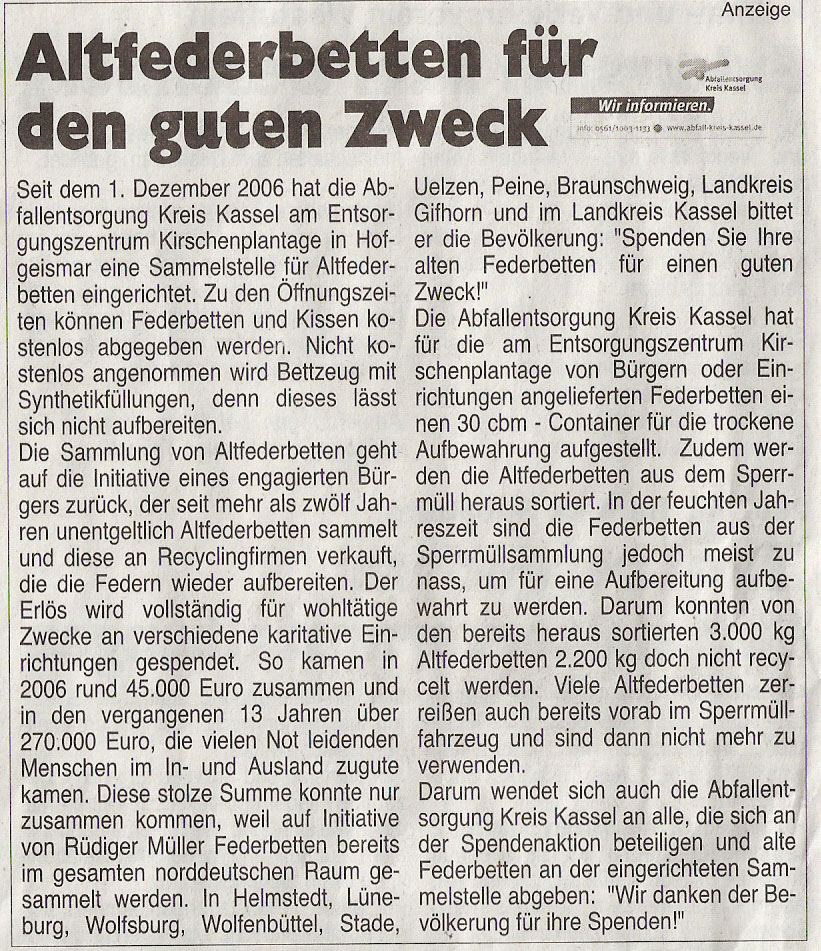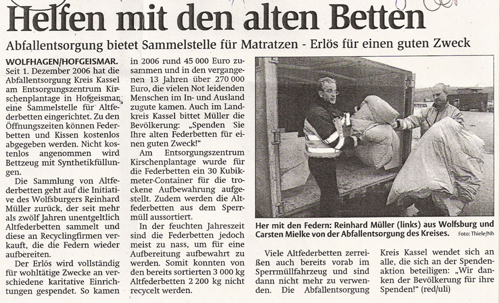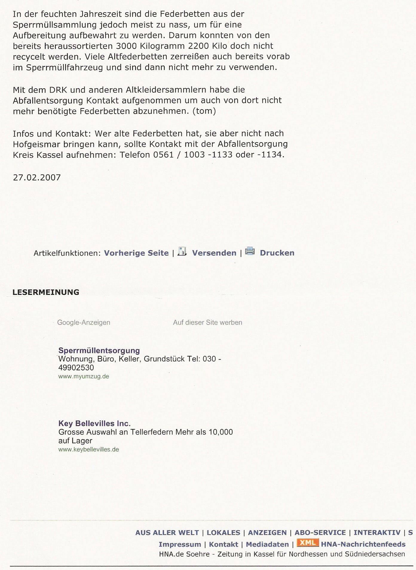 Abfallentsorgung Kreis Kassel Presseartikel HNA – Kassel – 07.03.07