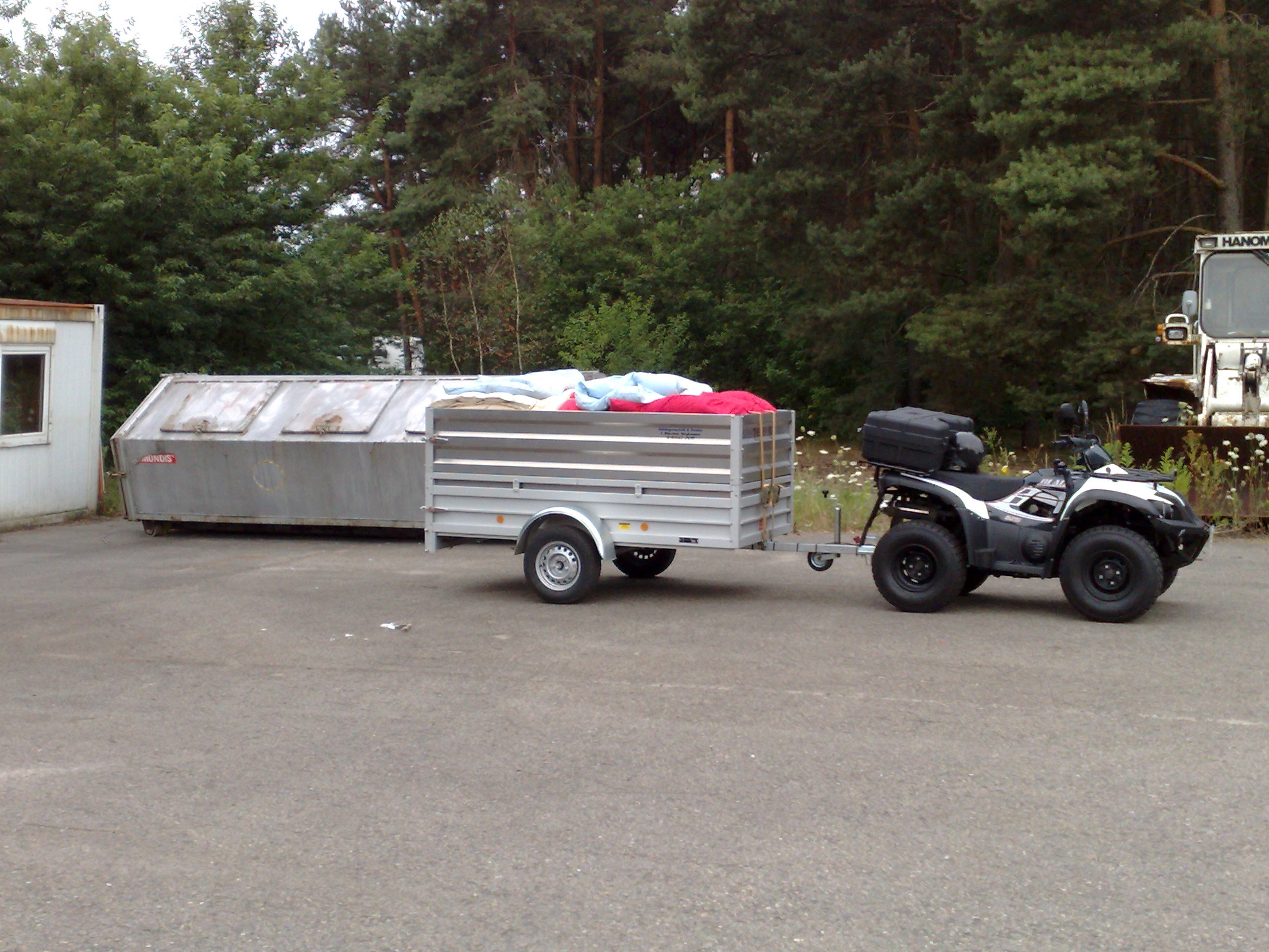 …dann rauf auf den Hänger und die Betten und Kissen auf den Boden dann runter und in den Container, Klappe zu Affe tot und weg wieder zum Anhängerverleih und das hat mir die Möglichkeit wieder gegeben das ATV wieder in der Garage zu parken.