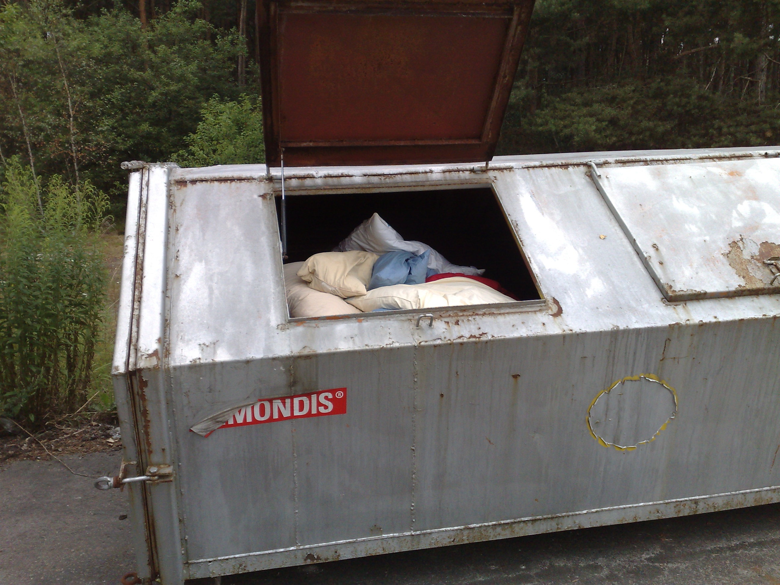 Auch die Klappe beim Container auf und schon landeten die ersten Betten dort hinein…