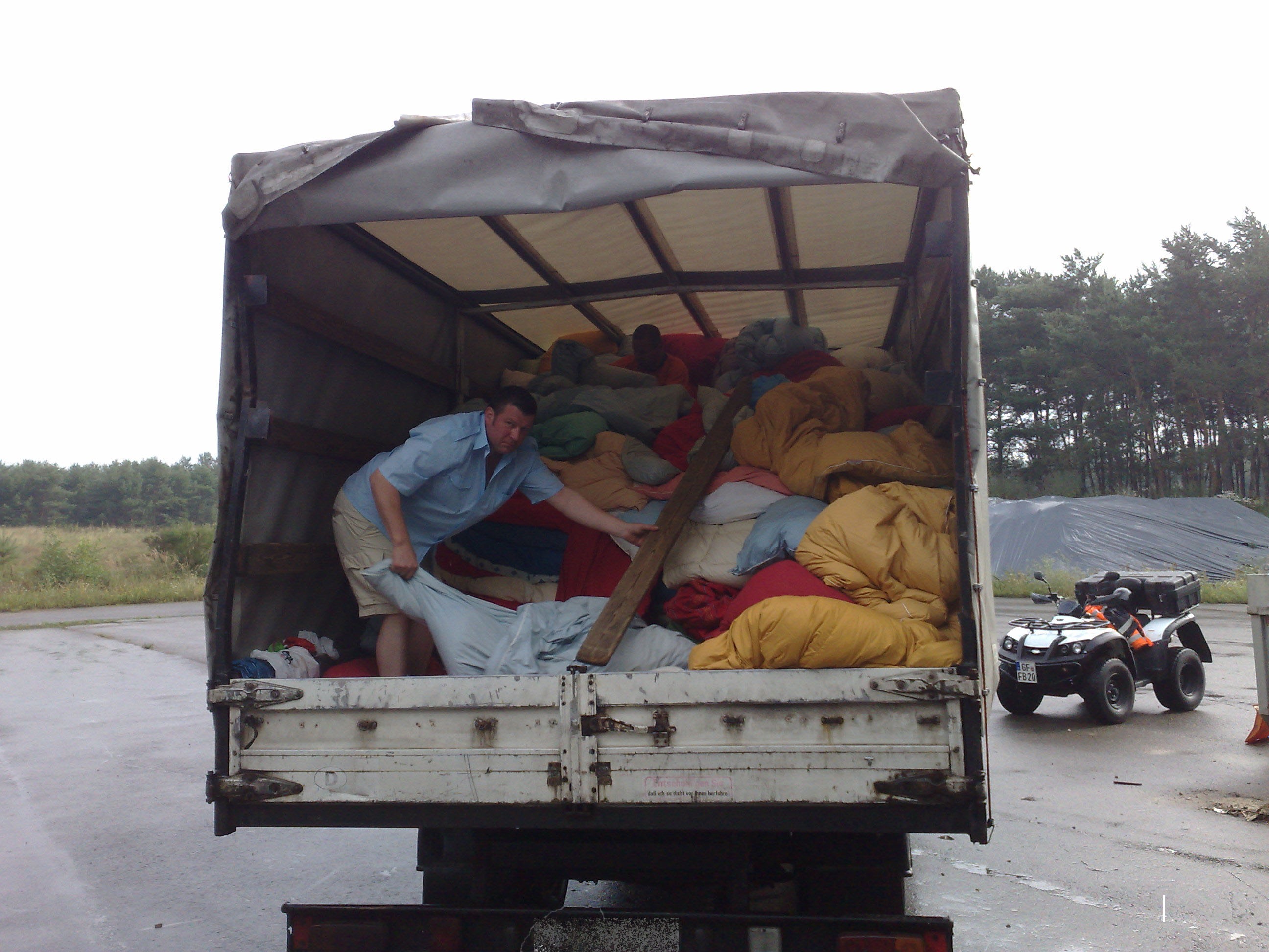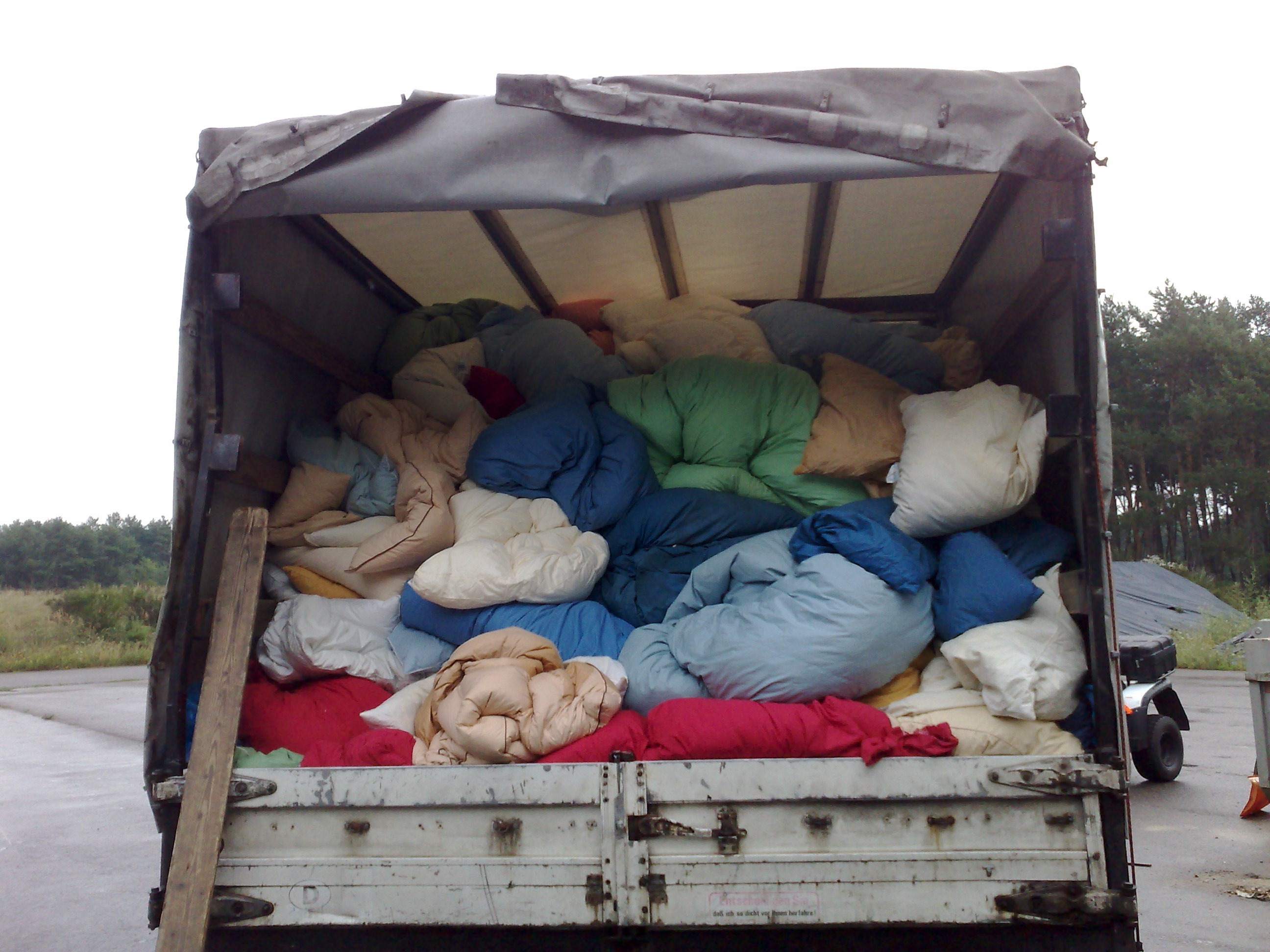 Hier sind wir gerade in Wesendorf kräftig beim aufladen, stopfen und drücken und ich warf Ihnen die Federbetten und –kissen zu.