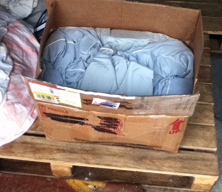 …von weit her und zwar aus Schwäbisch-Hall. Nach dem öffnen sah ich zuerst ein blaues Kopfkissen, das schmiss ich auf den noch nicht eingeordneten Haufen Federbetten. Das gleiche tat ich auch mit dem Steppbett. Die Füllung war in einem sehr guten Zustand. Deutschland wird von Tag zu Tag kleiner, weil ich jetzt regelmäßig von weither Pakete mit Federbetten geschickt bekomme. Danke an die Frau aus Schwäbisch-Hall.