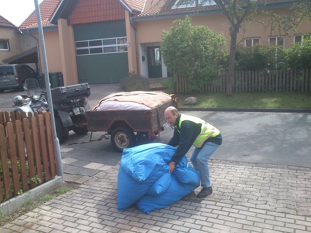…und dieses auch. Hier ist Thomas mit Freude dabei diese schönen Federbetten aufzuladen.