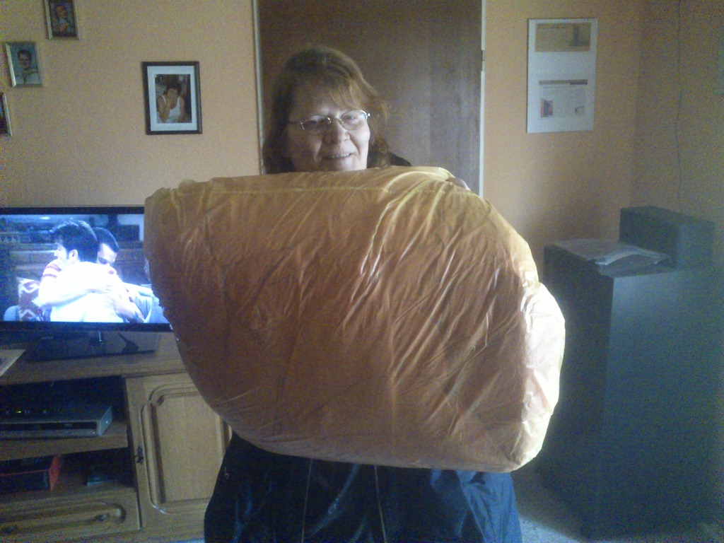 Mein Schwester hat mir ein Paket gebracht, was sie vorher im Kiosk geholt hat da der Postbote es dort abgab. Paket in Empfang genommen, gleich den Absender fotografiert und Carmen (meine Schwester) hat es sich nicht nehmen lassen das Paket selber zu öffnen, sie öffnete das Paket mit einem Brieföffner.