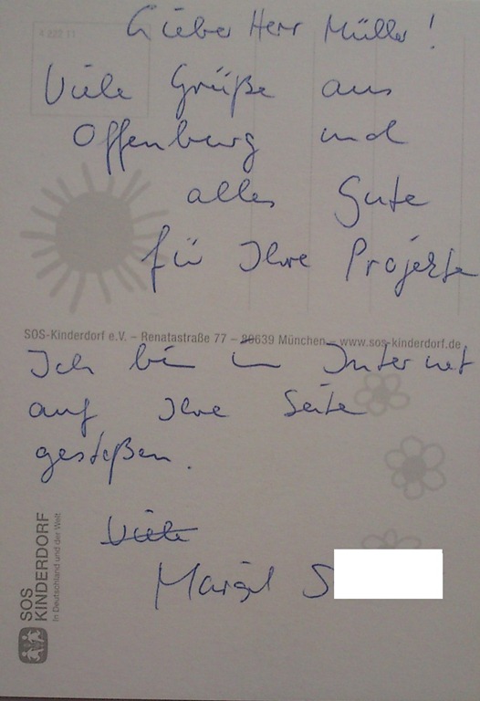 Und hier ein paar nette Worte, die mir immer wieder Auftrieb geben weiter zu machen.