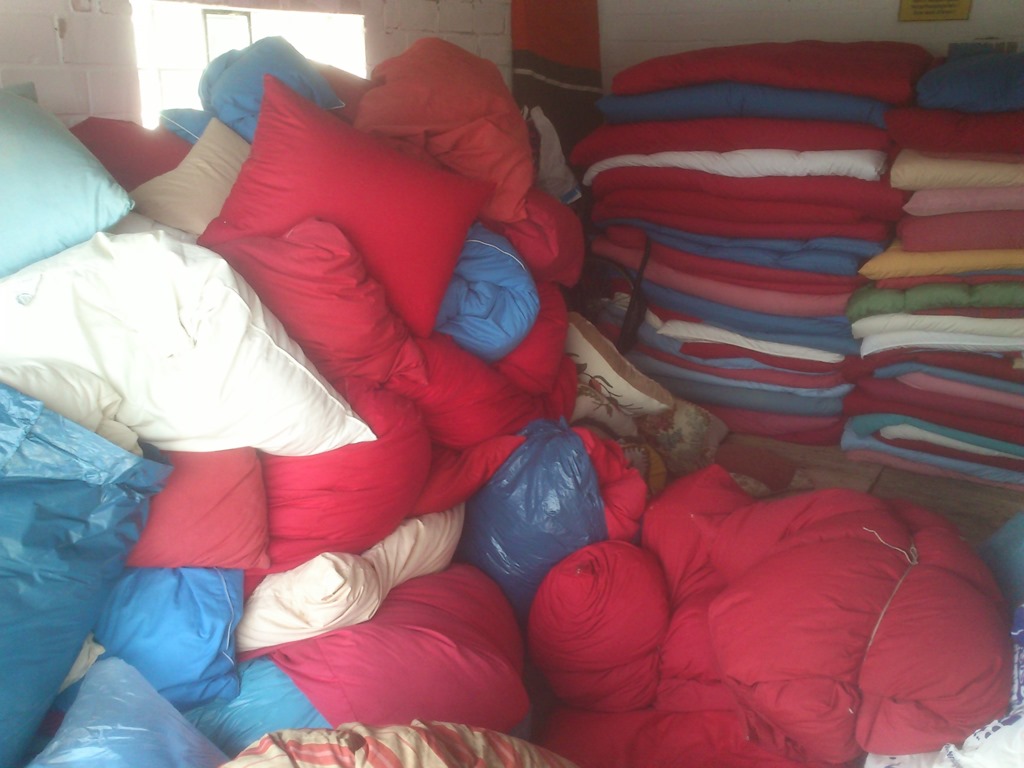 All die Federbetten, die unordentlich in der Garage liegen, sind größtenteils gebracht worden. Nur eine Abholung haben wir selber gemacht, wenn´s hochkommt haben wir gerade  mal 20 kg abgeholt. So denn will ich mal anfangen…