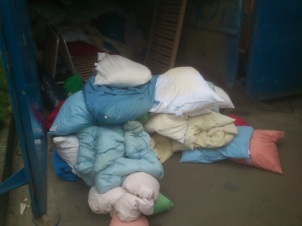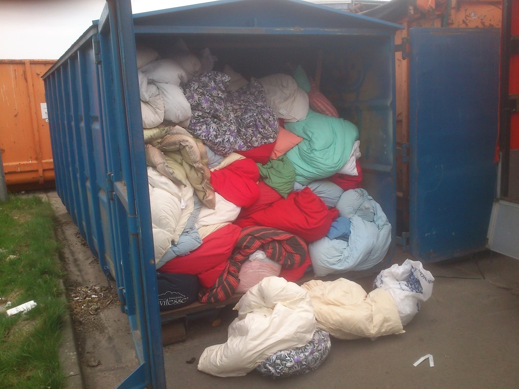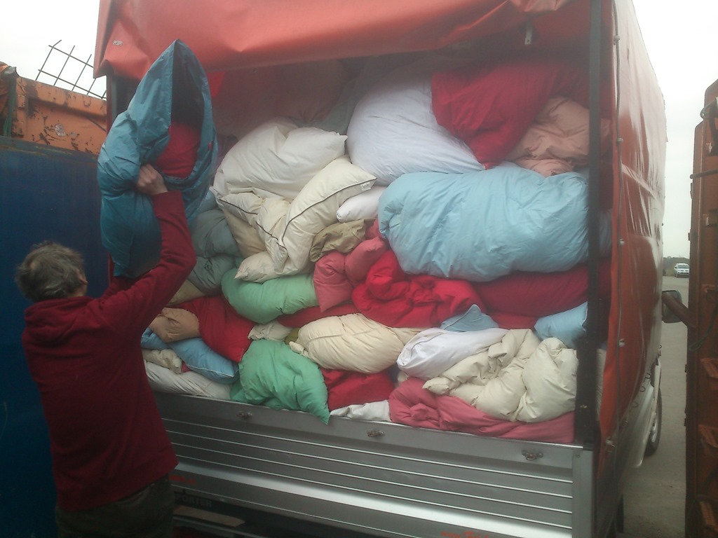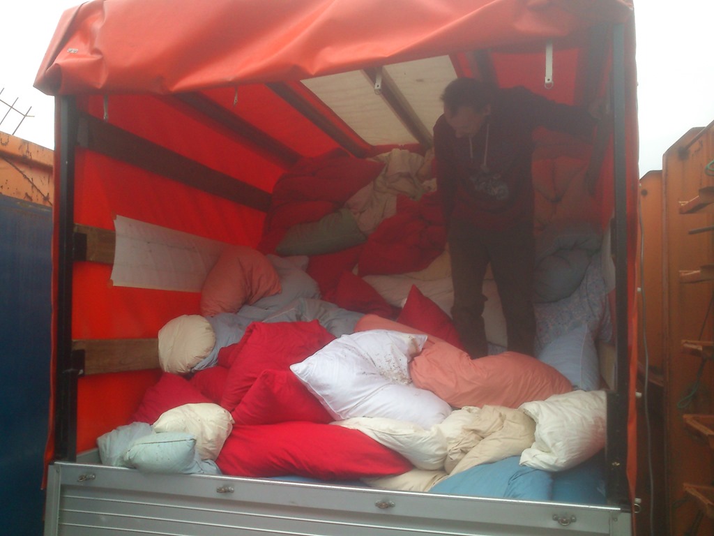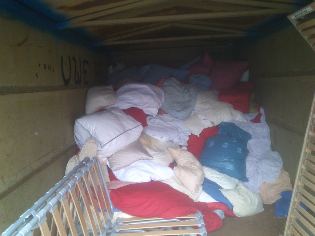 …OH MEIN GOTT der Container ist so voll das die Federbetten beim öffnen der Tür heraus fielen und wir begangen das Fahrzeug zu beladen.