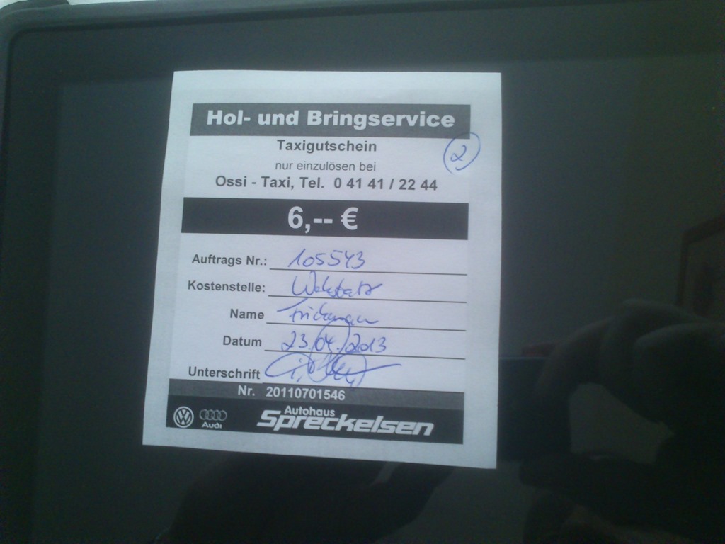 In der zwischen Zeit nahm Renate R. Auftragsannahme zwei Taxigutscheine und fühlte sie aus und wir unterhielten uns auch schön.