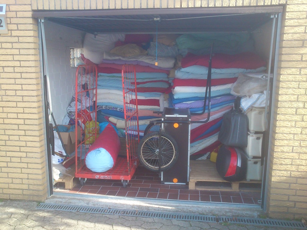 In Wilsche angekommen war ich dann doch sehr erstaunt, dass das Garagentor verschlossen war und keine Federbetten außer dem Rollwagen, wo sich Federbetten/Kissen die noch nicht eingewogen waren und mein Fahrradanhänger verlassen neben dem Garagentor standen, ich dachte man der T. kann aber schnell stapeln. Uwe und ich stiegen aus dem Auto aus und er ging gleich Richtung der Wohnung von Carmen und T., ich öffnete die Garage um das Meisterwerk mir an zu schauen und war dann doch sehr enttäuscht, was ich da sah. T. hatte die Federbetten nicht gestapelt sondern einfach lose wie er sie nahm hinein geschmissen. Also zog ich die hineingeschmissenen wieder aus der Garage raus um zu sehen wie weit er die Federbetten gestapelt hat, er hatte gar nichts gestapelt sondern einfach nur lose reingeschmissen. Nun machte ich mich an Werk und stapelte Palette für Palette ordentlich die Federbetten wieder ein, als ich 1 1/2 Stunde schweißgebadet, weil es halt sehr warm war, fertig war konnte ich den Anhänger und den Rollwagen wieder mit hinein stellen, was vorher wie T. es gemacht hatte, nicht ging.