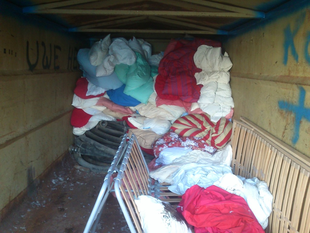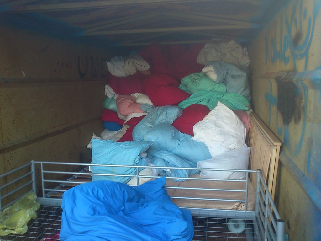 …Wieder rein in den Container und Federware auf das vordere Bettgestell angehäuft und diese flogen auch auf die Ladefläche…