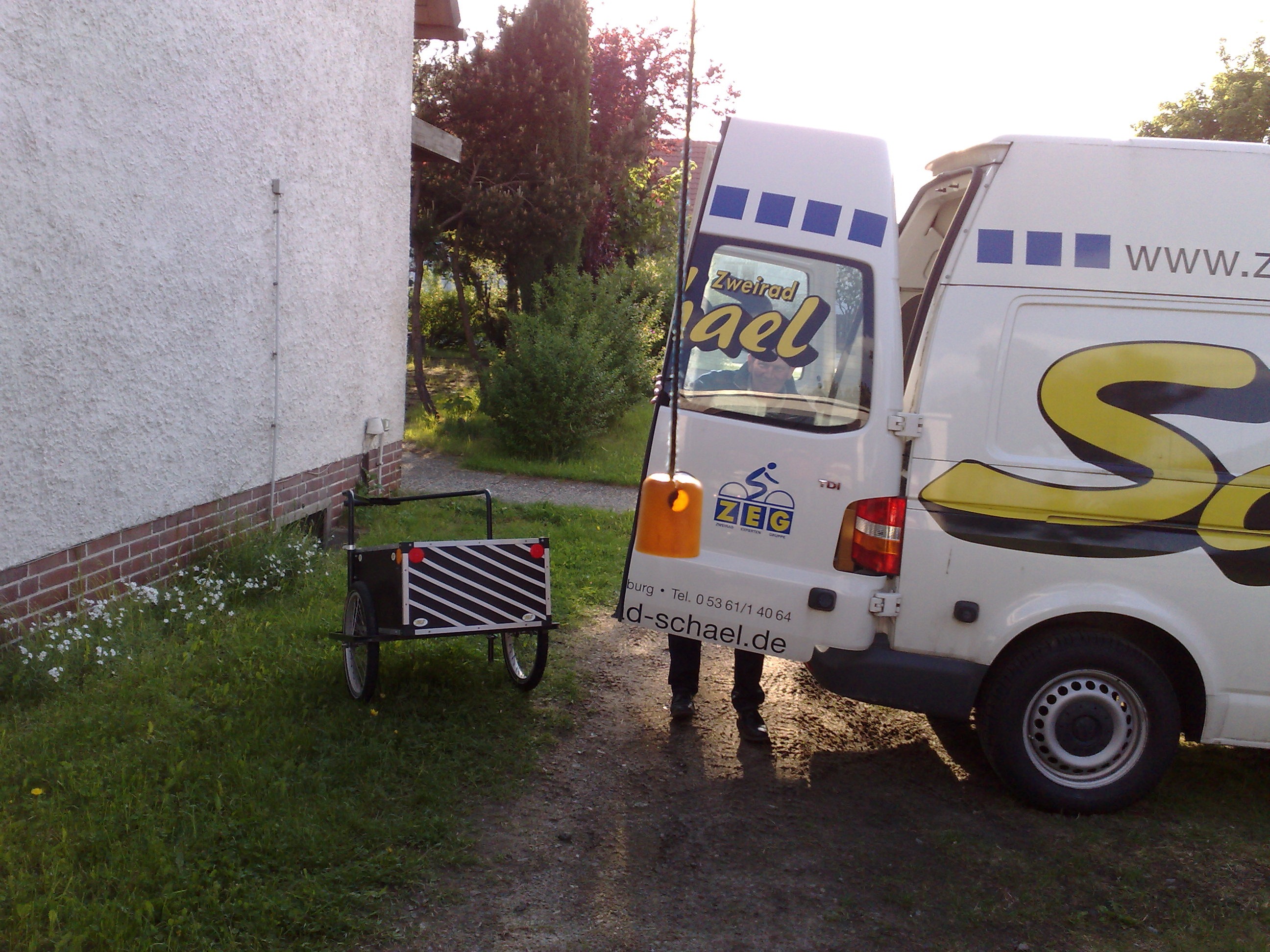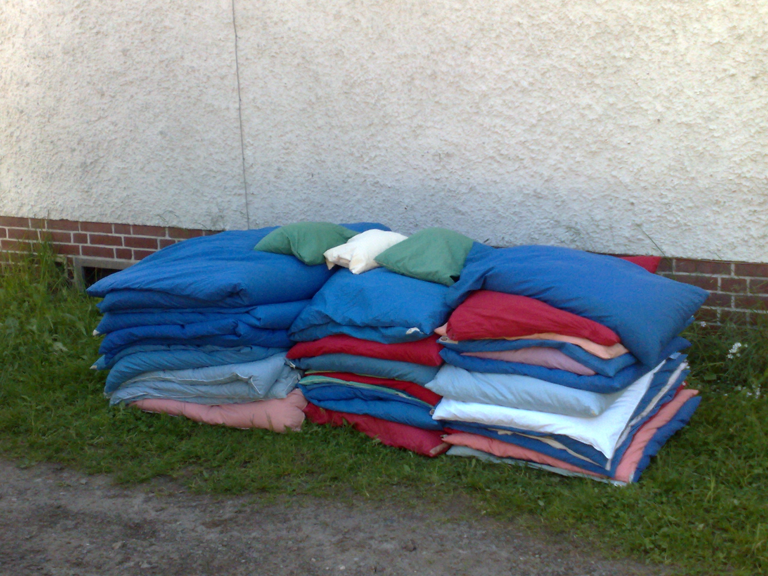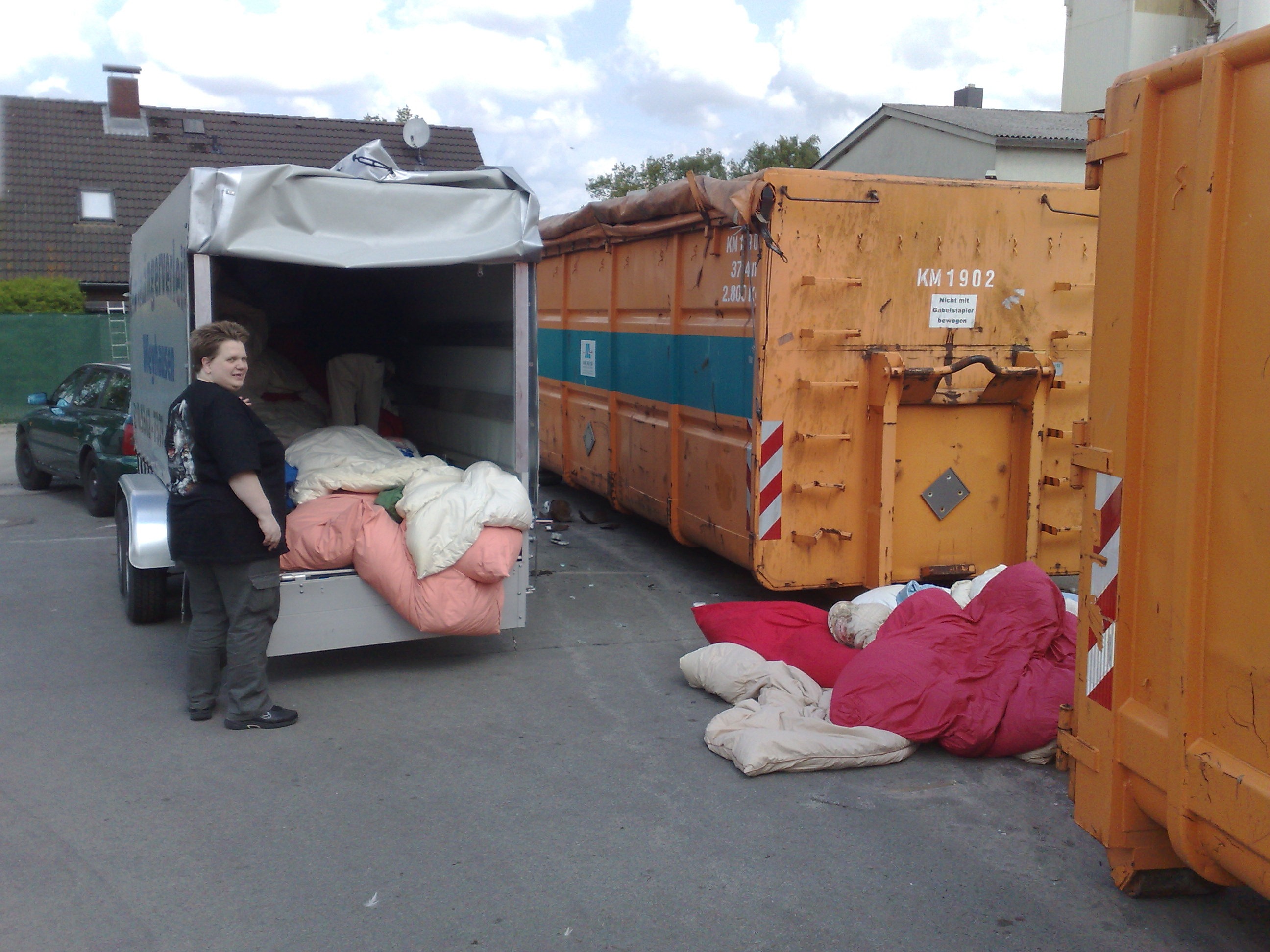 Sonntag, Juni 6th, 2010Obwohl ich immer frage wie viel Federbetten und Kissen abgeholt werden sollen, stelle ich immer wieder fest das anstatt der angegebenen Zahl von z.B. 2 noch weitere 4 dazu gekommen sind, also musste ich mir einen Anhänger holen um dann zwei Stellen in Helmstedt, eine in Schöningen und eine in Königslutter abzufahren. Nun fahre ich los…