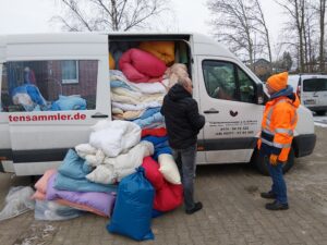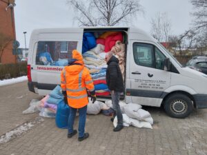 Die Sammlung ist von 12 – 15 Uhr und die Leute kamen wie die Bienen, 1. Spender lud aus und ein anderes Fahrzeug fuhr vor…das Foto ist von 12:44 Uhr und der Crafter ist schon ganz schön voll.