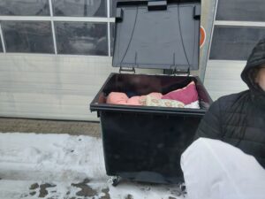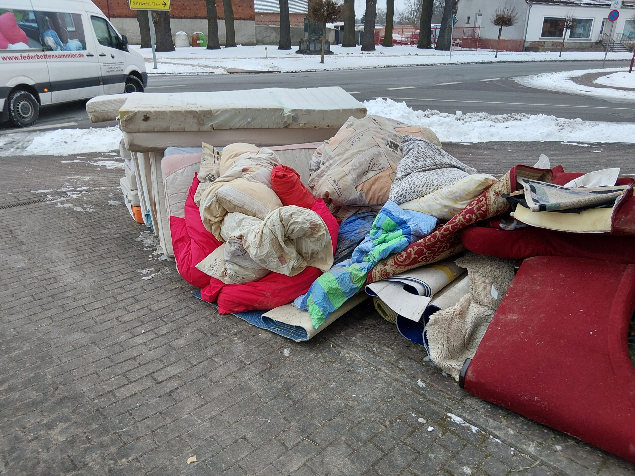Im Sperrmüll lagen einige Federbetten und Kissen, liegen lassen ist keine Option. Also dieses und die Sammlung in Lüchow ergaben später bei der Verwertungsfirma ein Gesamtgewicht von 516,5 kg.